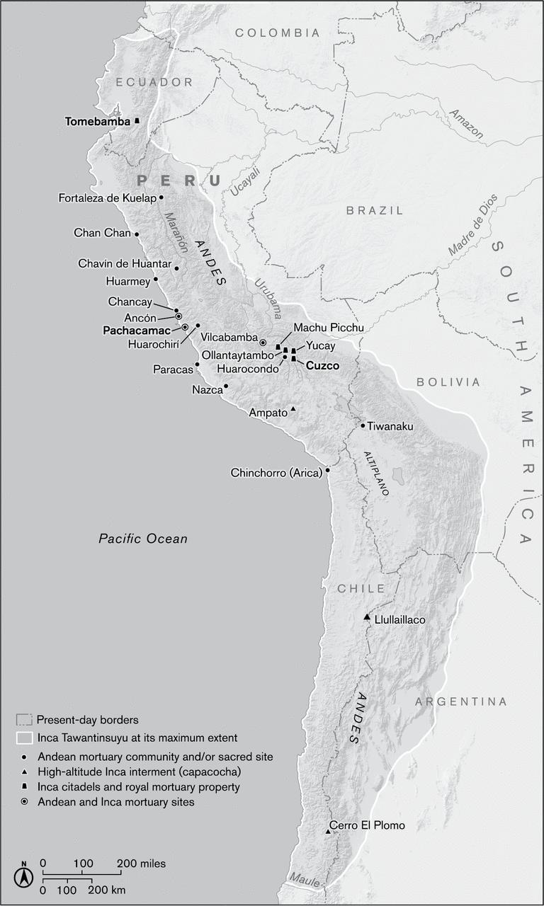 Pre-Hispanic mortuary landscapes of the Andes and Tawantinsuyu, the Inca empire, mentioned in Empires ofthe Dead. Map by Ben Pease.