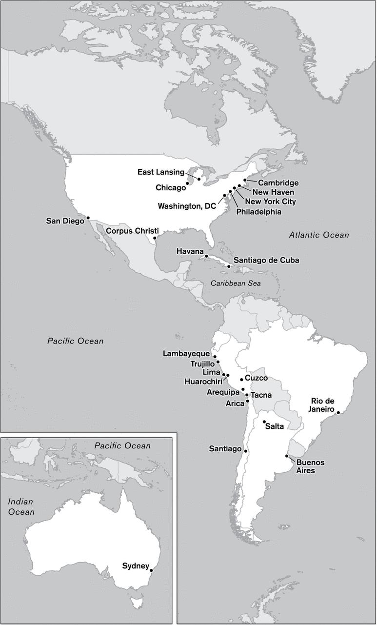 Global destinations of Andean ancestors and human remains, nineteenth and twentieth centuries, as mentioned in Empires ofthe Dead. Map by Ben Pease.