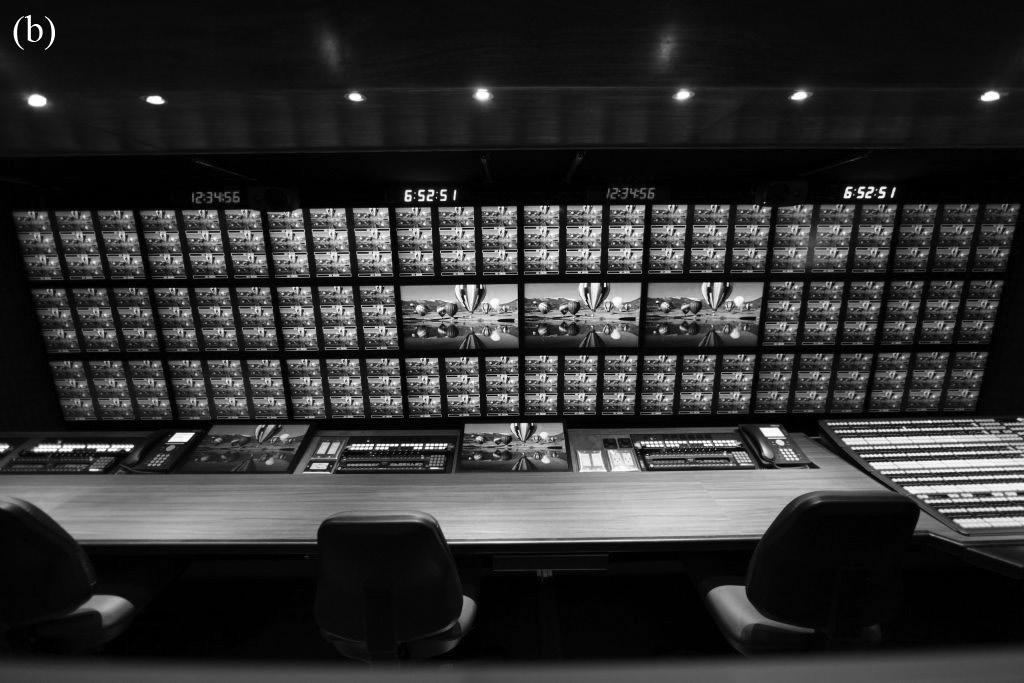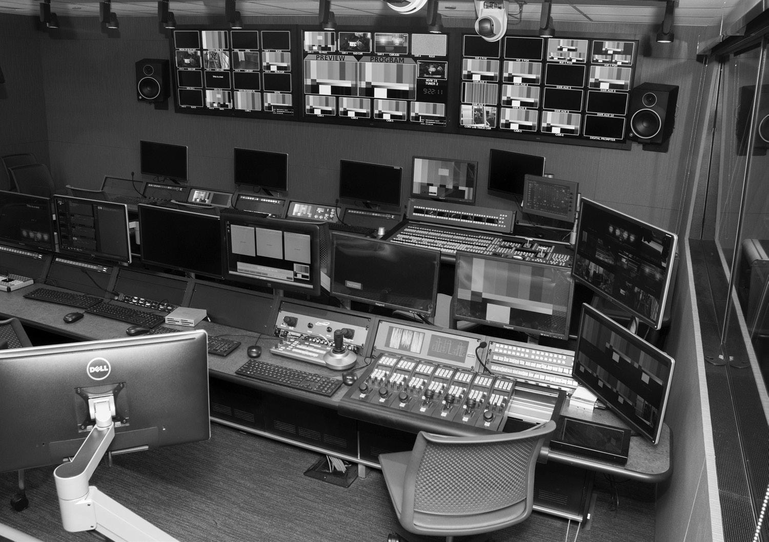 As noted, the control room will have a series of monitors, generally one for each input to the switcher and several to show what has been selected to be