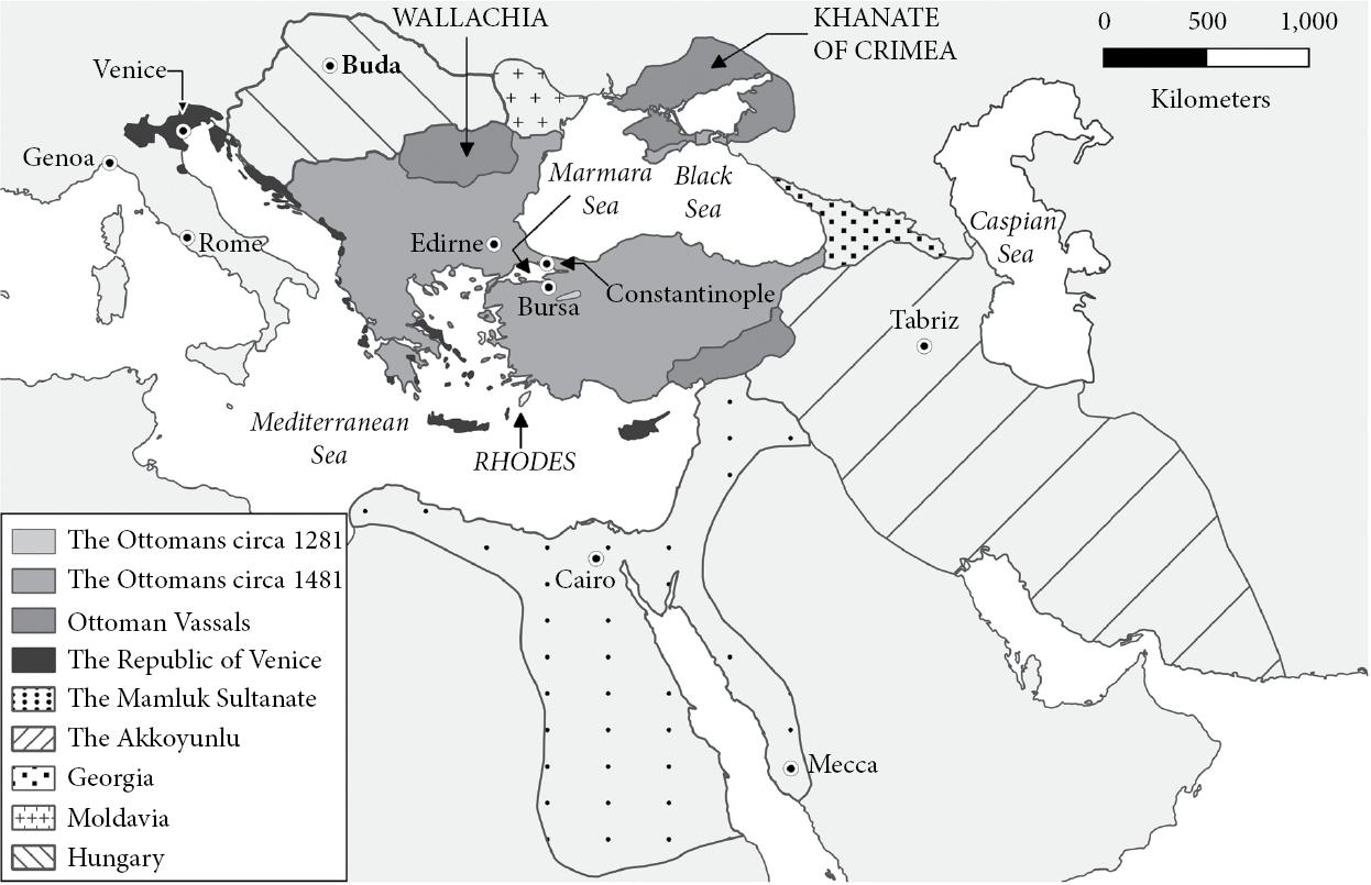 FIG. 1.1 The Ottomans and their neighbors, ca. 1481. Map by Jordan Blekking.