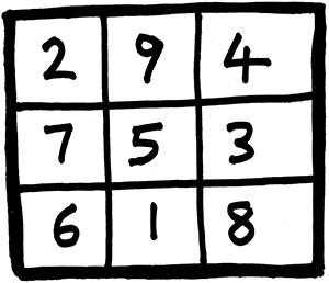 In fact, there is really only one magic square involving just the numbers 1, 2,…, 9; all the others are ‘trivial’ rearrangements—such as rotations—of the one in Fig. 14.