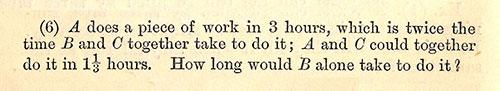 For James Hamblin Smith, to whom Leacock refers (slightly inaccurately), was a highly successful private tutor at Cambridge in the nineteenth century, and if we turn to page 172 of his Treatiseon Arithmetic(1889) we do indeed find A, B, and C engaged in a variety of tasks includingtheoneinFig.7.