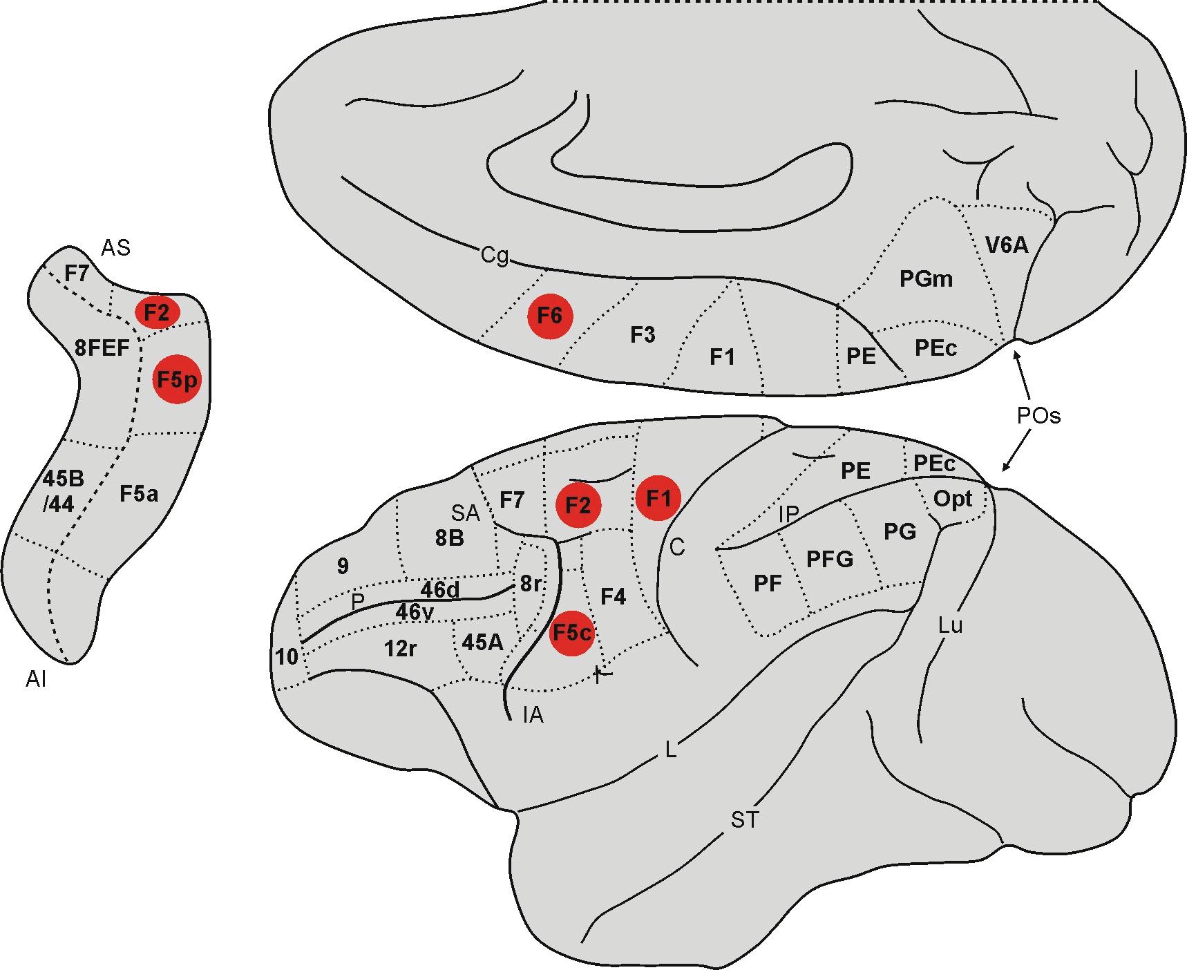 For a long time it was thought that the agranular frontal cortex in the macaque brain, corresponding to Brodmann areas 4 and 6 and classically considered as the motor cortex, was composed of two functionally distinct areas: the primary motor cortex, characterized by a complete and fine-grained representation of movements, and the supplementary motor cortex in which the representation of movement is less defined.1