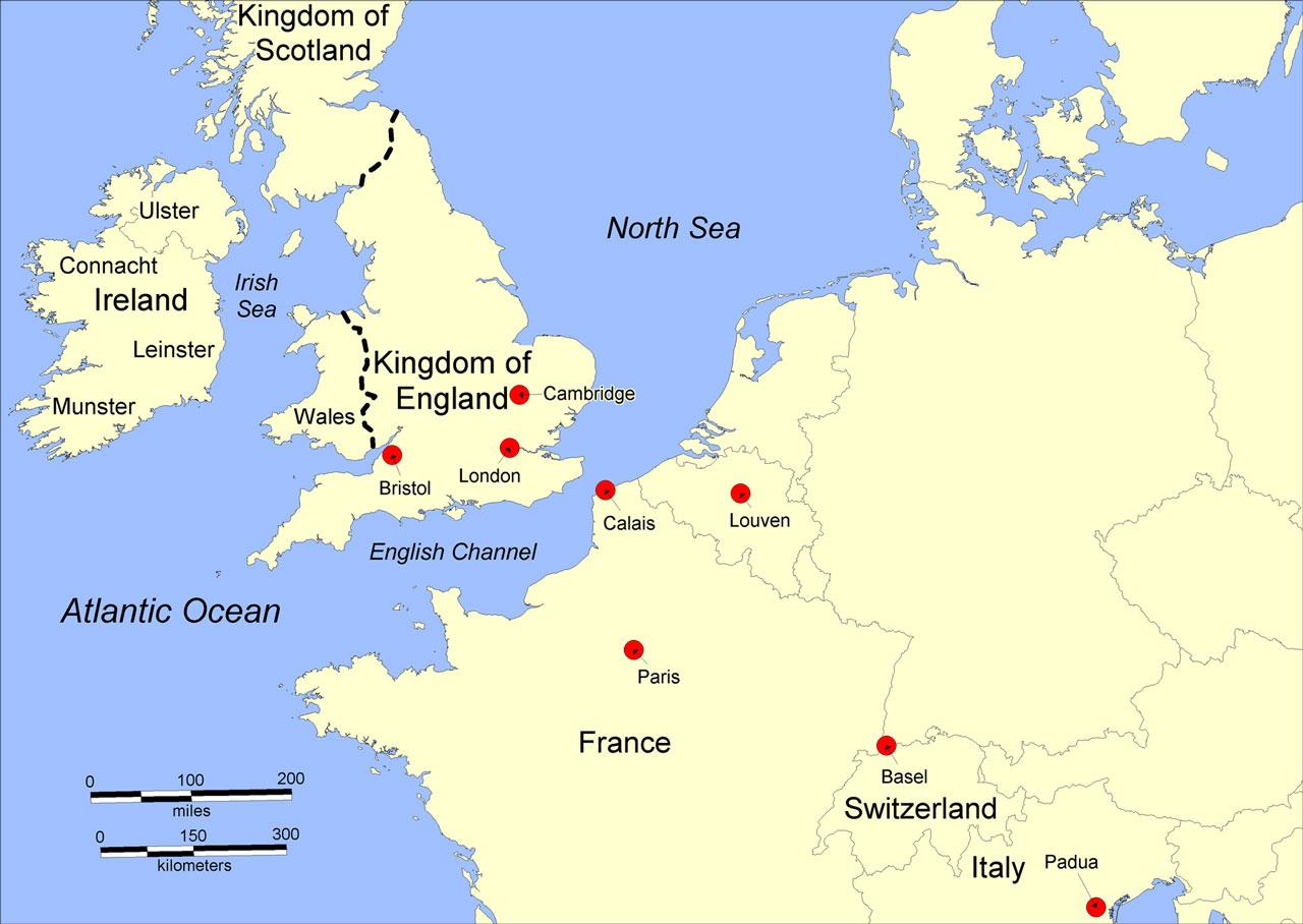 Francis probably went to Padua, Italy, with other young Englishmen in 1554, moving on to Basel, Switzerland, a year later. These stays exposed him to both the evidence-based thinking of the