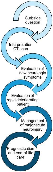 Most consults are prompted by very specific neurologic signs that have been detected by the nursing staff or attending physician during rounds. Obviously, the threshold for consulting a neurologist is variable and depends on the