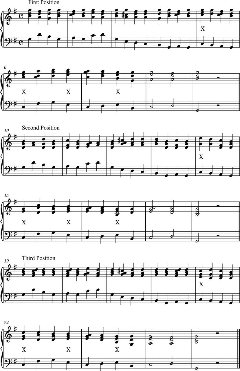 Guess what? You have to memorize all this! Unfortunately, this series of numbers is almost impossible to remember! But do not be dismayed. RO is easy once we know it at the keyboard by rote, because the intellect, ear, and hand all work together. We learn RO not by memorizing all the numbers but by playing it.