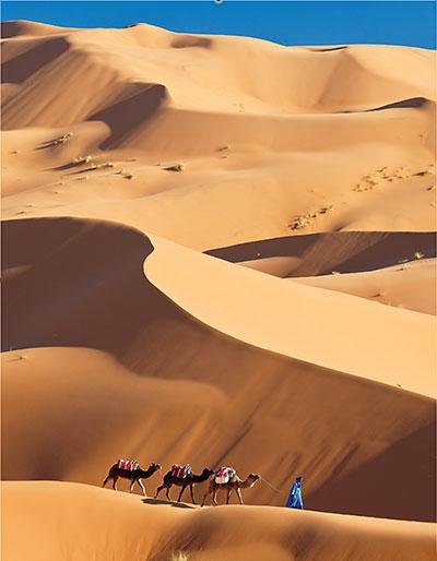 1.8 The Sahara desert is far from uniform. There are mountain ranges sufficiently high to attract precipitation and huge areas of sand sculpted into everchanging dunes by the wind. Between, much of it is barren, rocky lowlands.