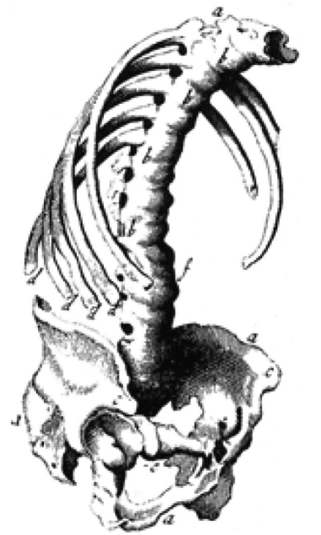 Skeletal specimens in several museum collections testify to the existence of AS from the earliest times. But its first definite anatomical description can be credited to Bernard Conner (1666–1698). He was an Irish physician studying medicine in France when some farmers brought him a skeleton they had found in a cemetery. He wrote in his report, accompanied by the drawing of the skeleton (see Figure 1.2), that the bones were “so straightly and intimately joined, their ligaments perfectly bony, and their articulations so effaced, that they really made but one uniform continuous bone.”