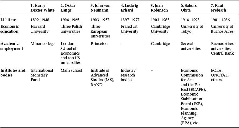 Almost all of these economists came from middle-class professional families with intellectual parents, most had experienced wartime disruption and sometimes personal hardship, and they were all intellectually clever and managed to get advanced education during a very difficult period. In their various ways, they were all talented, driving, and ambitious, wanting to improve the world (but they would not have necessarily agreed on what this meant). In contrast to the previous generation (where many learned their economics on the job), all the selected economists had formal training in the discipline, and though they studied around the world, most had been exposed to a recognizable curriculum of Western classical teaching with some elements of Marxism and an increasing dose of Keynes.