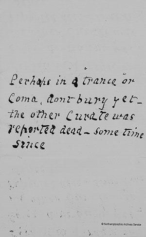 Perhaps in a trance or coma, don’t bury yet the other Curate was reported dead—some time since.1