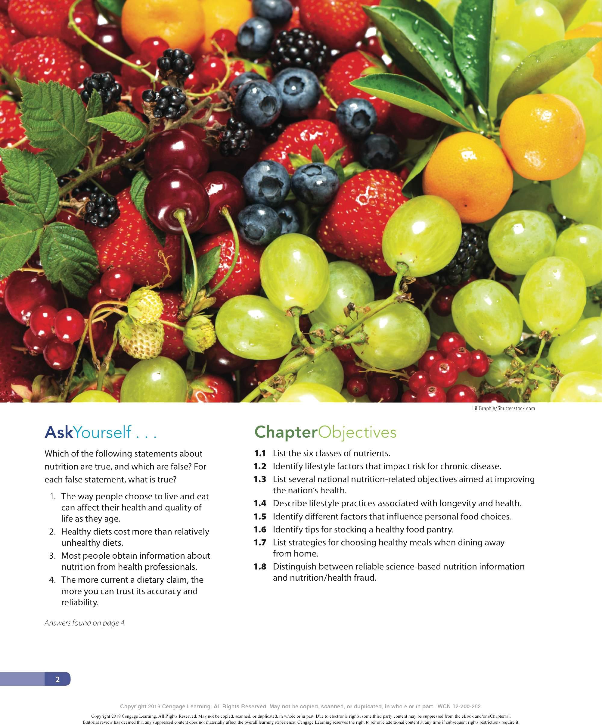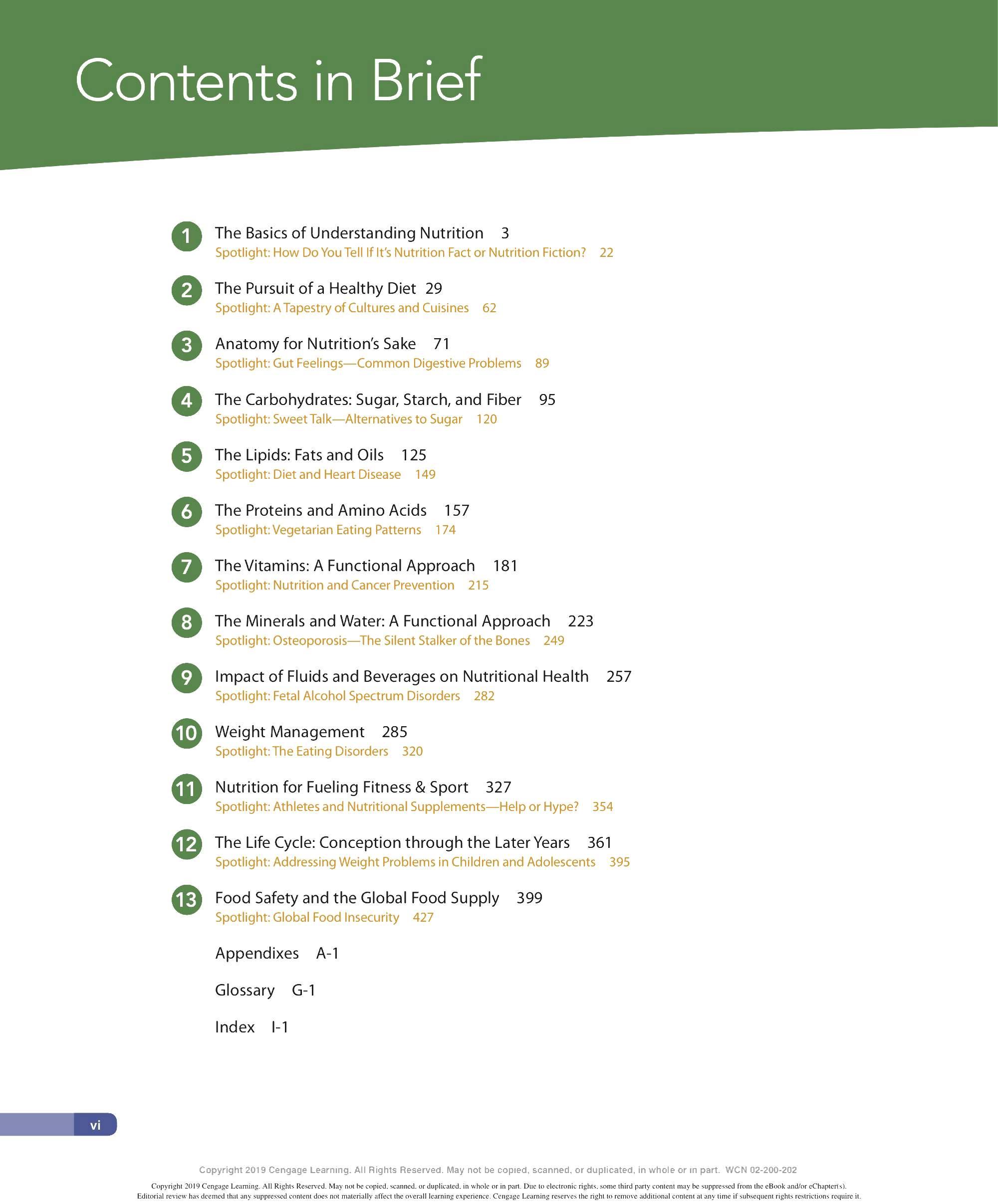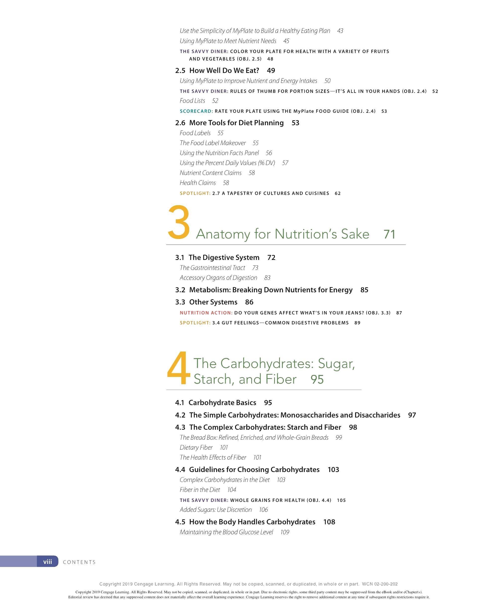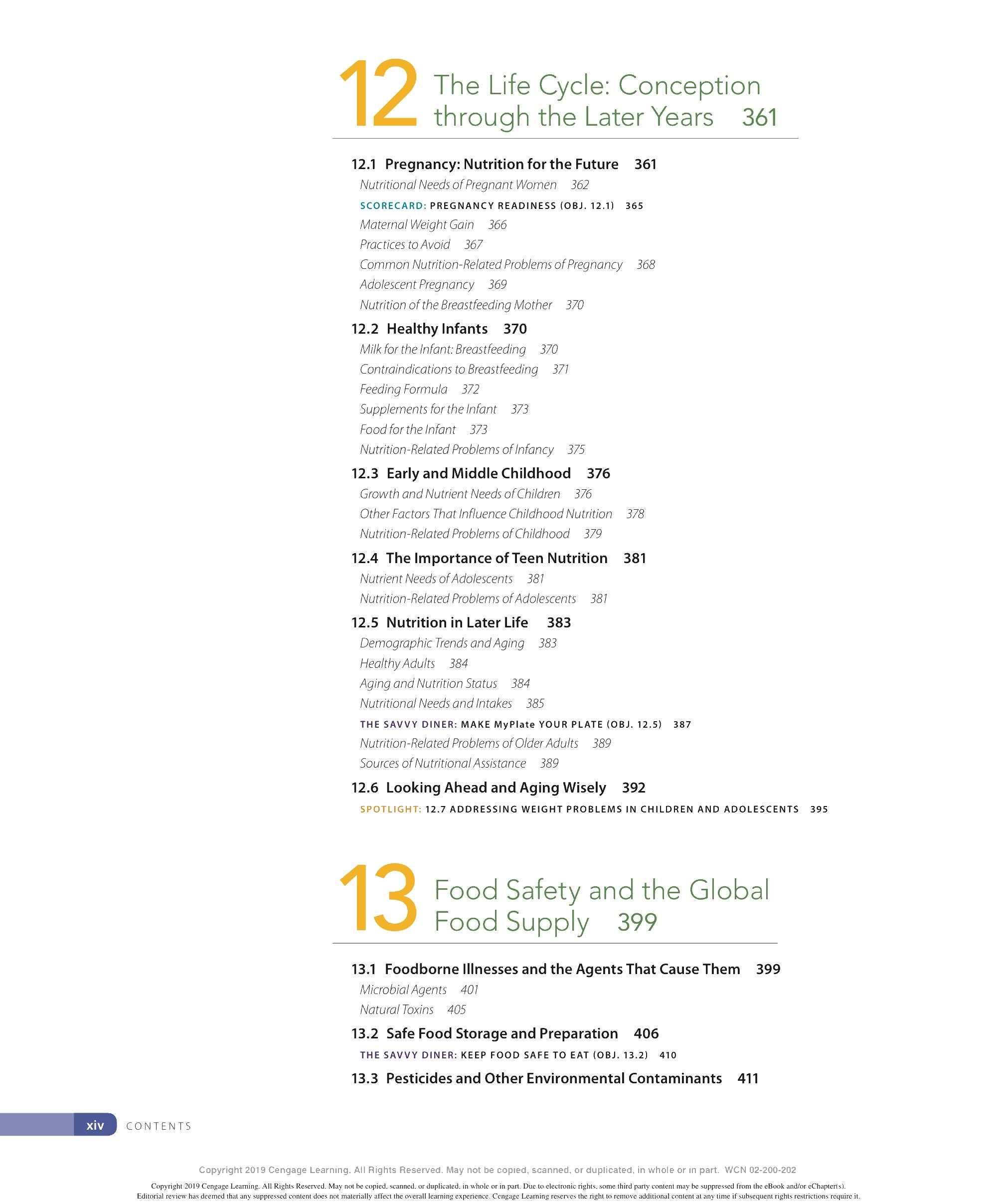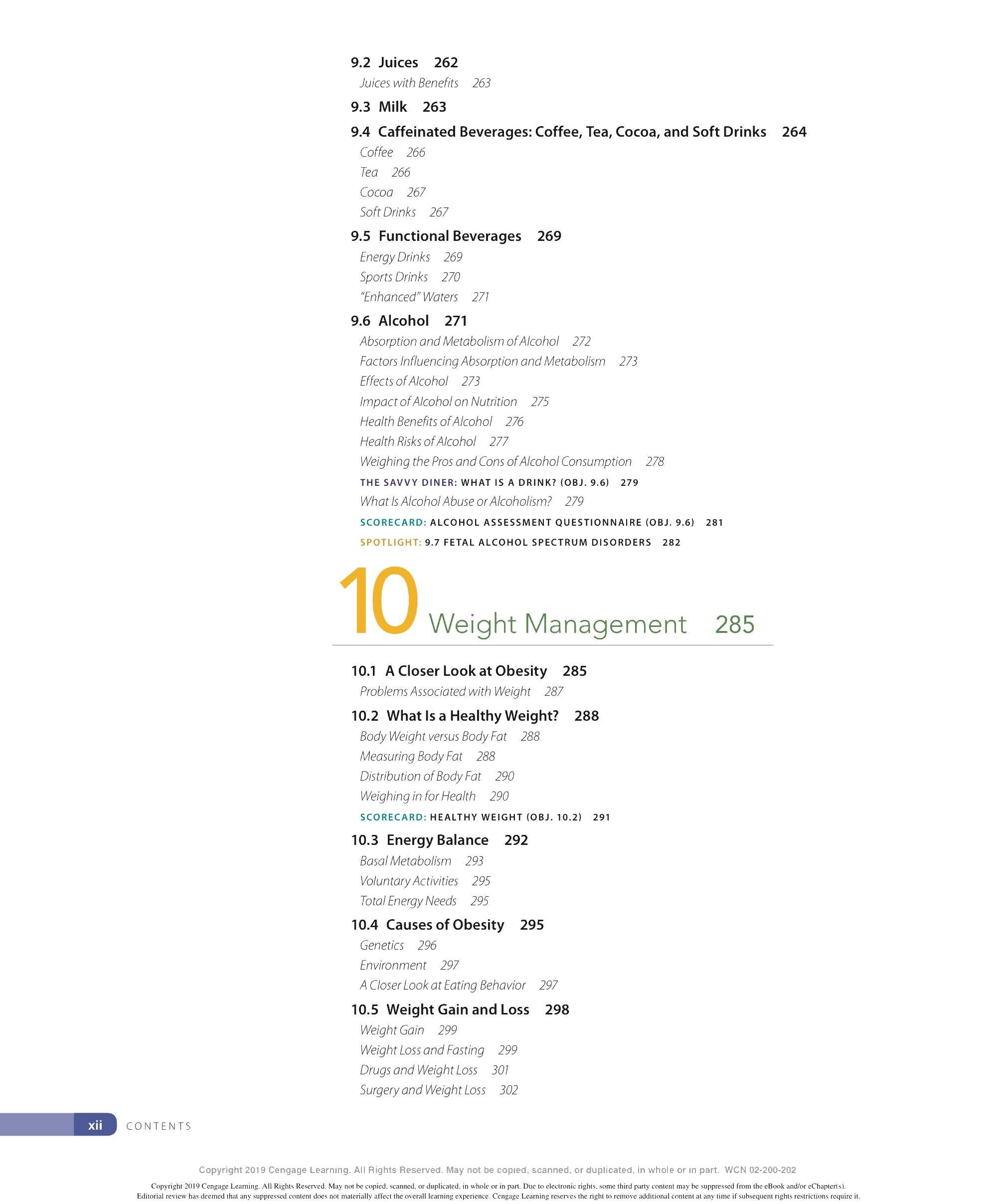 We are grateful to the many ind ivid uals who have made contri b utions to the development of this lOth ed ition of Personal Nutrition. We thank our family and friends for thei r continued support and encouragement throughout this endeavor and countless others. We appr eciate the insights provided by our colleagues - especially to all those ind ivid uals who have contri b uted their expertise to previous editions of this textincluding Eleanor Whitney, Sara Long Roth, Diane Morris, Gail Zyla, and Kathleen Morgan. Their insights are reflected in this new edition, still. We thank Kathy R oberts for her thorough revision of Chapter 12. We are grateful to Dr. Anne Buison Pellizzon for her scholarly ed its to Chapter 10, and to Jennifer D oane for her expertise and thorough r evision of Chapter 11. We thank Am b er Bowitz, too, for assistance with updates to the Spotlight features in Chapters 7, 8, and 11. We appreciate the hard work and expertise of the team of author s who prepa r ed ancilla r y material for this edition. Special thanks go to the editorial team and their staff: Krista Mastroianni, Pro d uct Manager ; Miriam Myers, Senior Content Developer ; Lori H azzard, M PS Li mited ; and Carol Samet, Senior Content Project Manager. Their guid ance ensured the highest quality of wor k throughout all facets of this pro d uction. We appr eciate the wo rk of Lumina Datametr ics for their work on the student and instructor resources. Our gratitud e goes to Tom Ziolkowski, Executive Marketing Manager, and h is team for their fine efforts in marketing this book. Our thanks to the many sales representatives who will introduce this new book to its readers. Our appr eciation goes to other member s of the production team: M PS Limited, artist, Geeta Kamath of Lumina D atamatics for photo research, and everyone at M PS Limited for thei r hard work and diligence in pro d ucing a text to be proud of. Last, but not least, we owe much to our colleagues who provided expert reviews of this text- not only for thei r id eas and suggestions, many of which