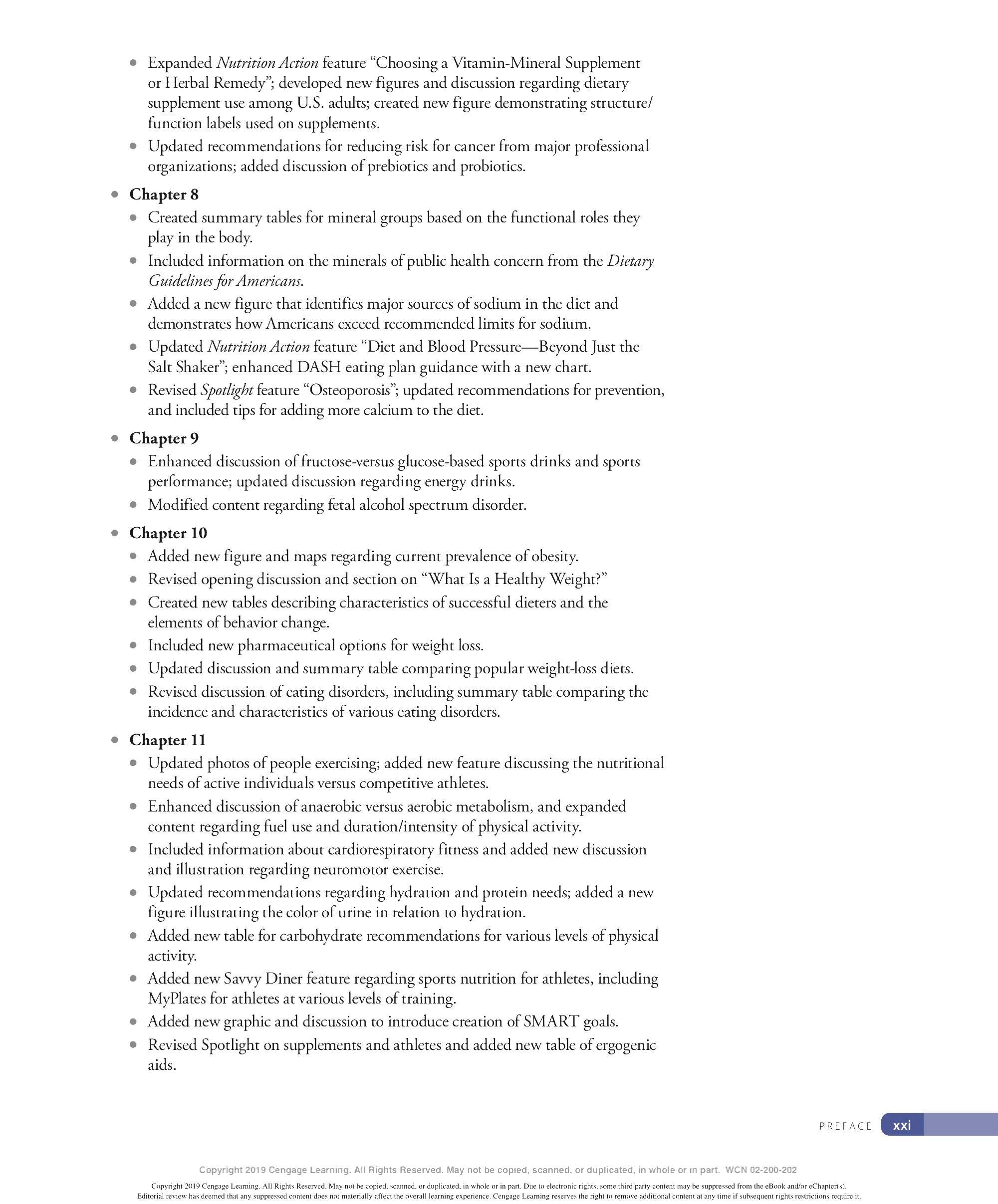 • Rev ised Spotlight on supplements and athletes and added ne w table of ergogenic aids.