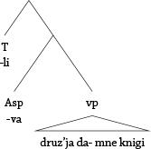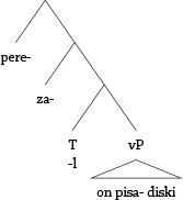 These prefixes are attached further from the root than the secondary imperfective and the inflectional suffixes are, as the morphophonological evidence discussed in Pesetsky (1979) shows.4 If the tense inflection originates in T, it then should follow that the aspectual prefixes are introduced still higher in the syntactic structure. The implication is that (7c) would then require a base structure something like (8).