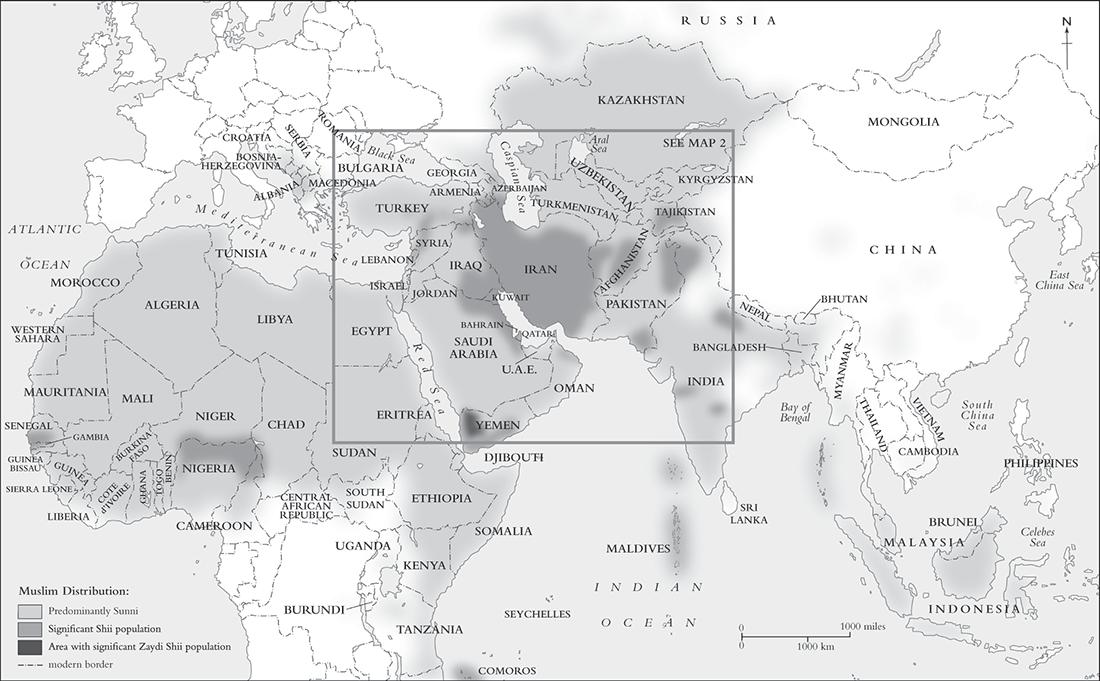 1. Map of wider Islamic world indicating Sunni and Shii populations