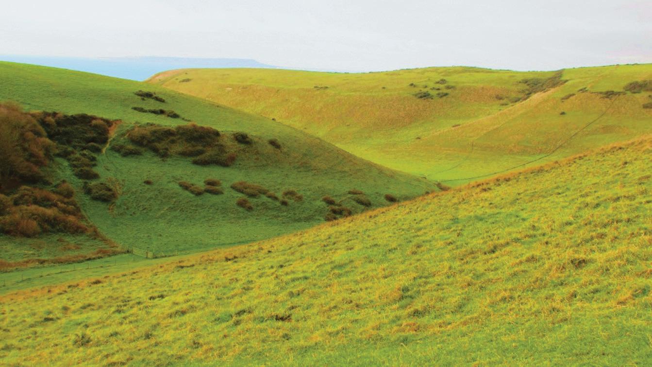 Figure 1.12 Scratchy Bottom, near Lulworth. A great dry valley excavated into the Chalk under periglacial conditions (ASG).