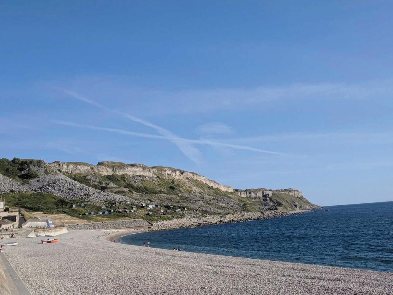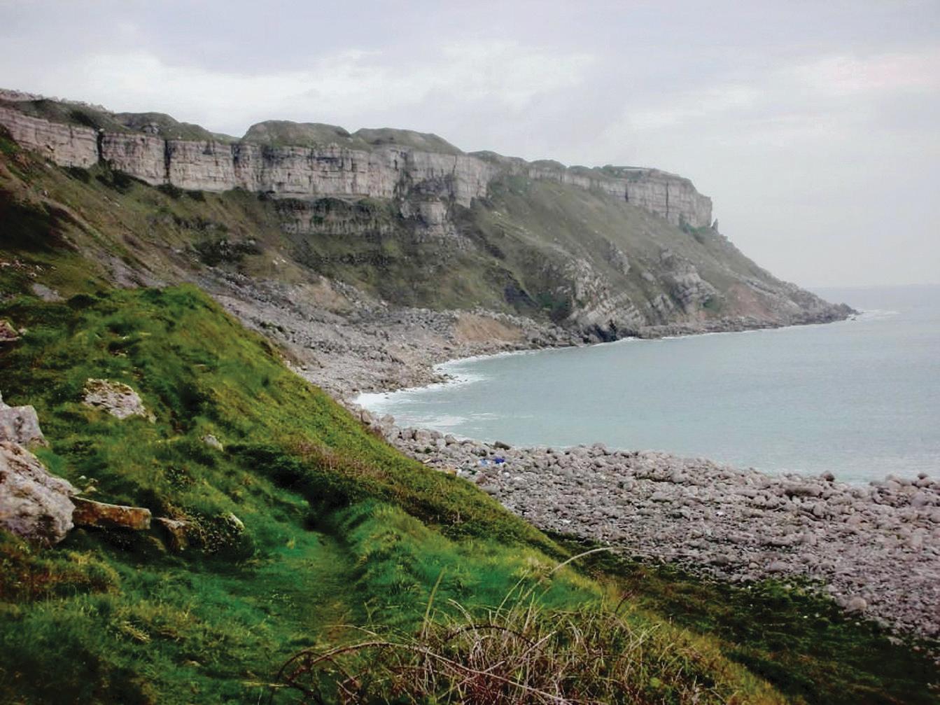 Figure 1.14 Te West Weare clifs of Portland taken from the Cove House Inn (Alice Goudie); a superb place to see the infuence of rock characteristics and structures on clif forms.