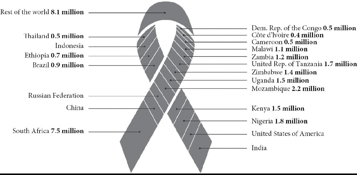 Fig. 1.7 People living with HIV globally, 2020: 38 million 36.2 million adults and 1.8 million children under 15 years. Source: UNAIDS. (2020d). Estimates. https://www.unaids.org/en/resources/infographics/people-living-with-hiv-around-theworld.
