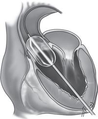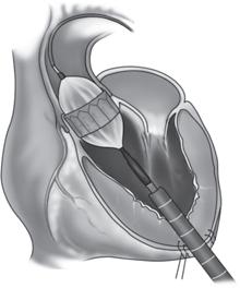 Figure1.12 . Transcatheteraorticvalveimplantation(TAVI).(A)Usingthetransapical approach,awireisplacedthroughtheaorticvalveoverwhichaballoonisusedtodilatethevalve. (B)Usingfluoroscopicimaging,thecatheterispositionedacrossthevalve,and(C)thevalveis inflated.
