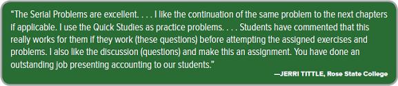 Serial Problemsuseacontinuousrunningcasestudytoillustratechapter conceptsinafamiliarcontext.TheSerial Problem canbefollowed continuouslyfrom thefirst chapterorpickedupat anylaterpoint inthe