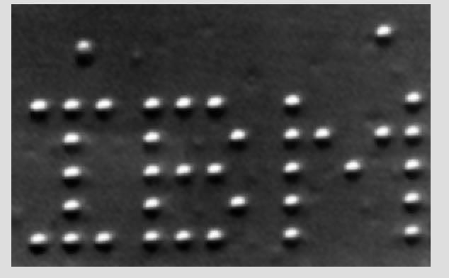 1.7: IBMspelledoutwith35xenon atoms,depositedonacold(4K) Nickel(110)surface.Theatomswere transferredfromthesharpScanningTunnellingMicroscope(STM) tipandimagedwiththeSTM[20]. Thisimagereceivedalargeecho.