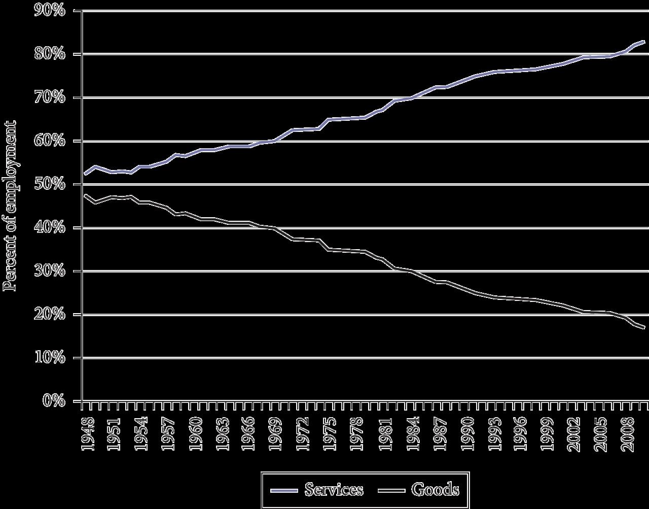 Figure 1.1 Private-sector employment as percentage of total private employment: 1948–2010.