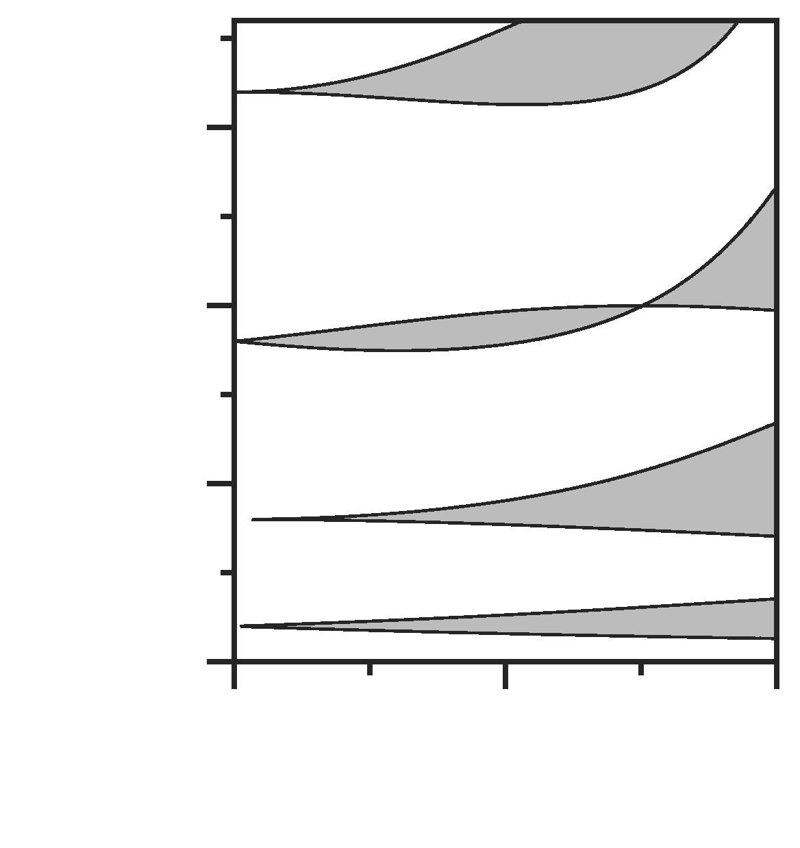 Fig.1.7 (a)StabilitydiagramoftheMathieuequation,cf.eqn(1.32),asafunctionof ω 2 0 T 2 p /π 2 =4ω 2 0 /ω 2 p and λ.Whiteareascorrespondtoastablesystemwithˆ μa,b < 0,while grayareascorrespondtoanunstablesystemwithˆ μa,b > 0.(b)Thesamesystemwithadded dampingΓ=0 1.Thetonguesareroundedoffbythedampingandnolongerreach λ =0.
