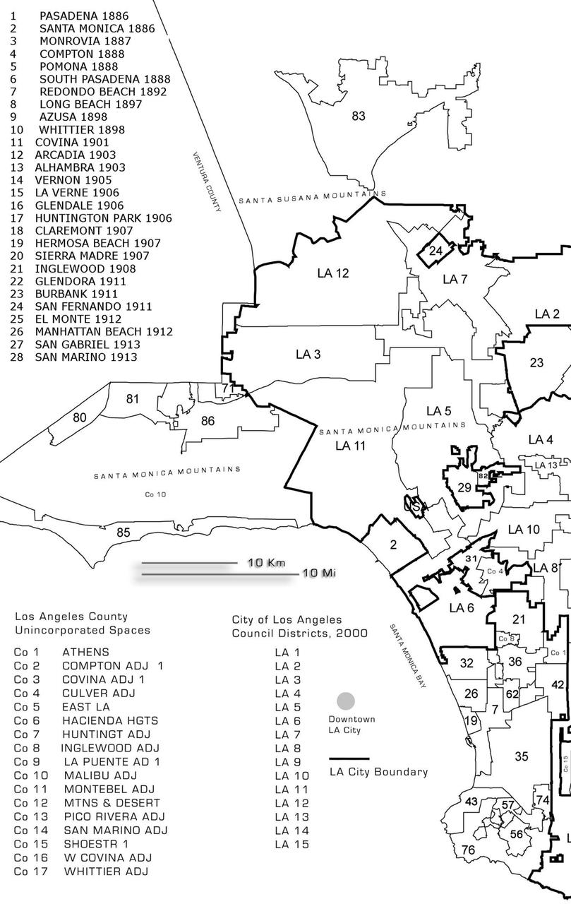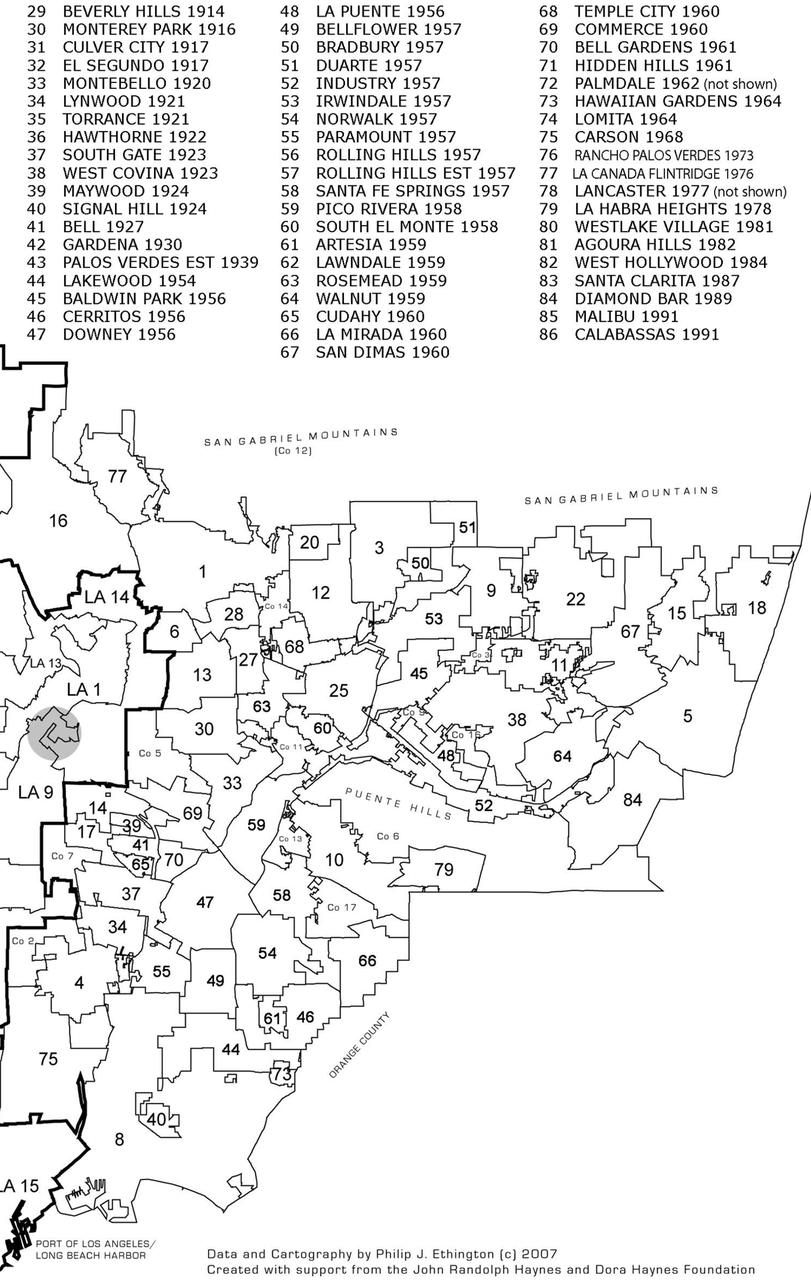 Municipalities and neighborhoods of Los Angeles County. Cartography by Philip J. Ethington ©2007.