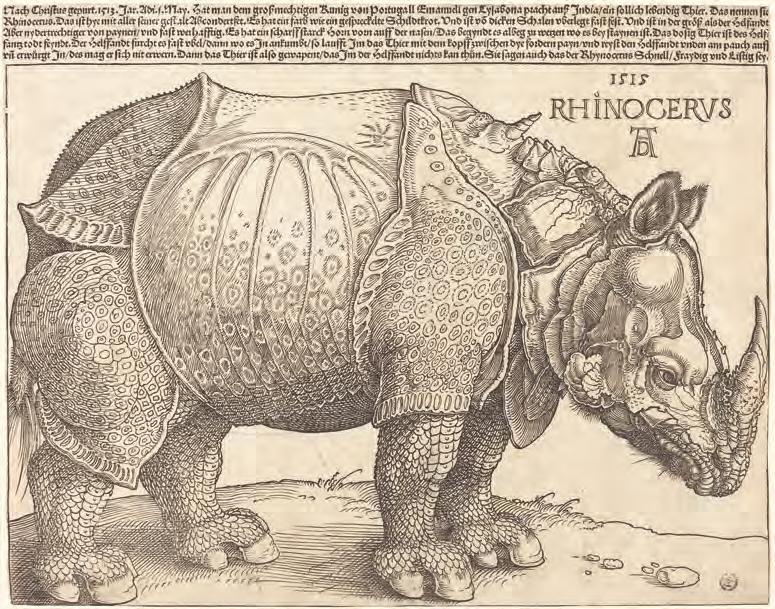 1.2 Albrecht Dürer, Rhinoceros, woodcut, 1515, 23.5 cm × 29.8 cm, National Gallery of Art, Washington DC, public domain. 4