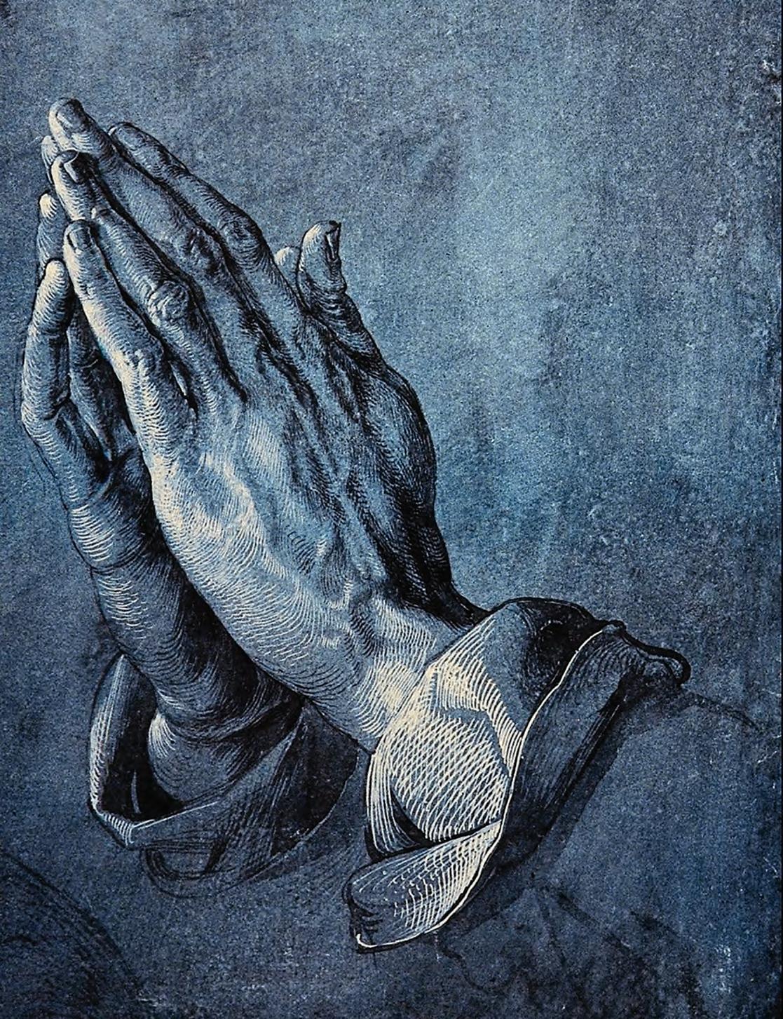 1.3 Albrecht Dürer, Praying hands— most likely his own, 1508, 29 × 19 cm, pen and ink on blue paper, Albertina, Vienna, public domain. 6
