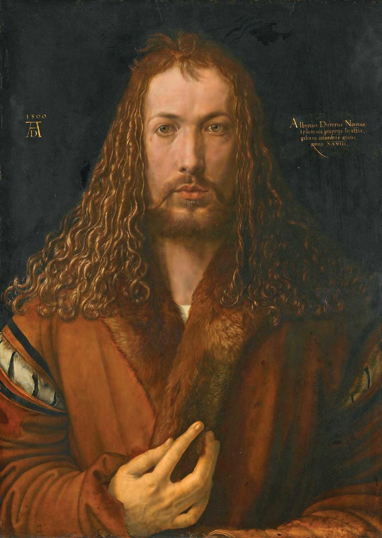 1.1 Albrecht Dürer, self-portrait in a fur-trimmed coat, 1500, oil on panel, 67 × 49 cm. Alte Pinakothek, Munich. © Bayerische Staatsgemäldesammlungen, licence: CC BY-SA 4.0, URL: https:// www.sammlung.pinakothek.de/de/artwork/Qlx2QpQ4Xq. 3