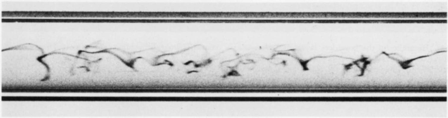 Fig.I.2:Laminar-turbulenttransitionintheHagen–Poiseuilleflowthroughacircular tube.ThesephotographsweretakenbyN.H.JohannesesandC. Loweusingthe originalReynolds’pipe.