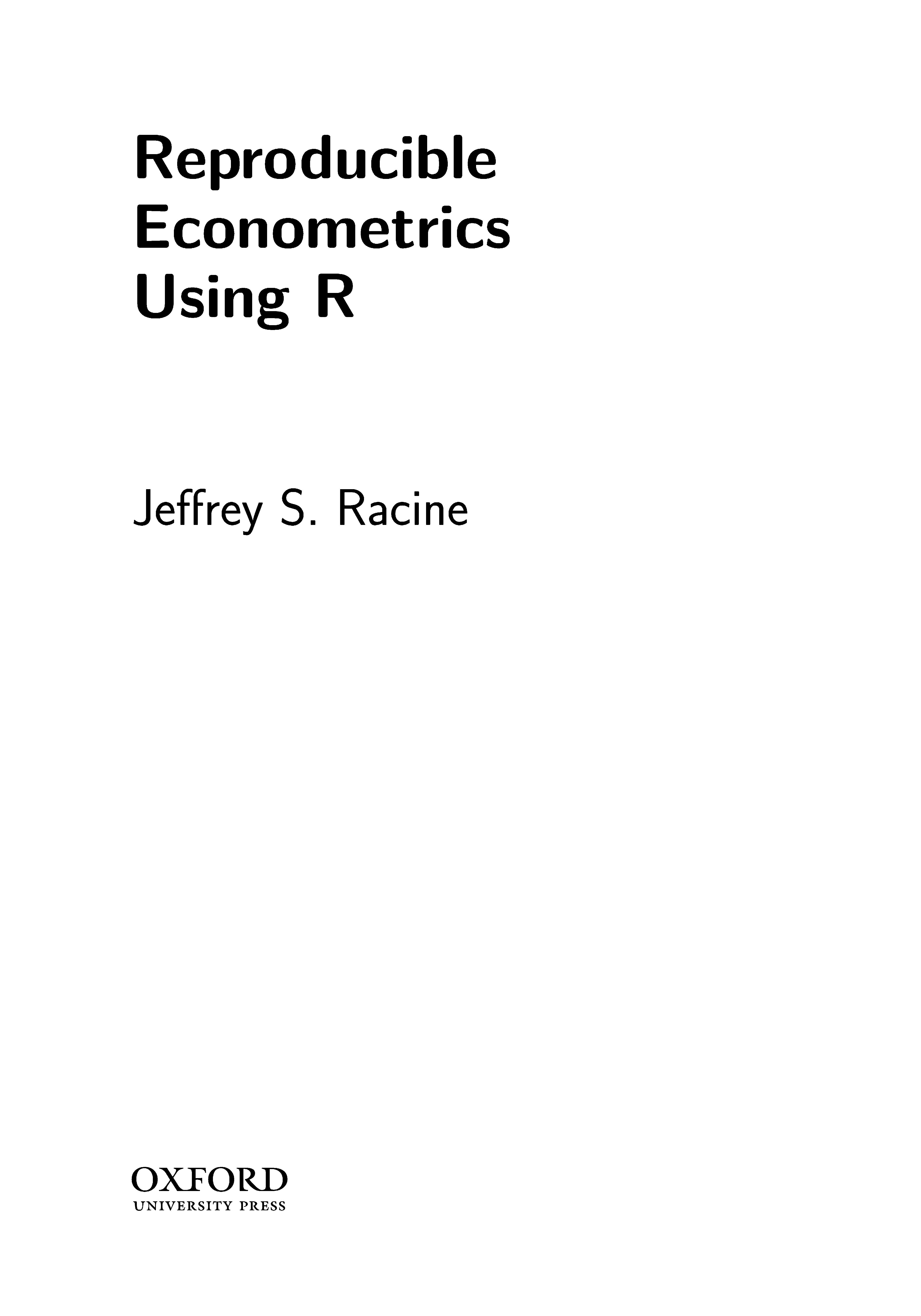 Title: Reproducible econometrics using R / Jeffrey S. Racine.