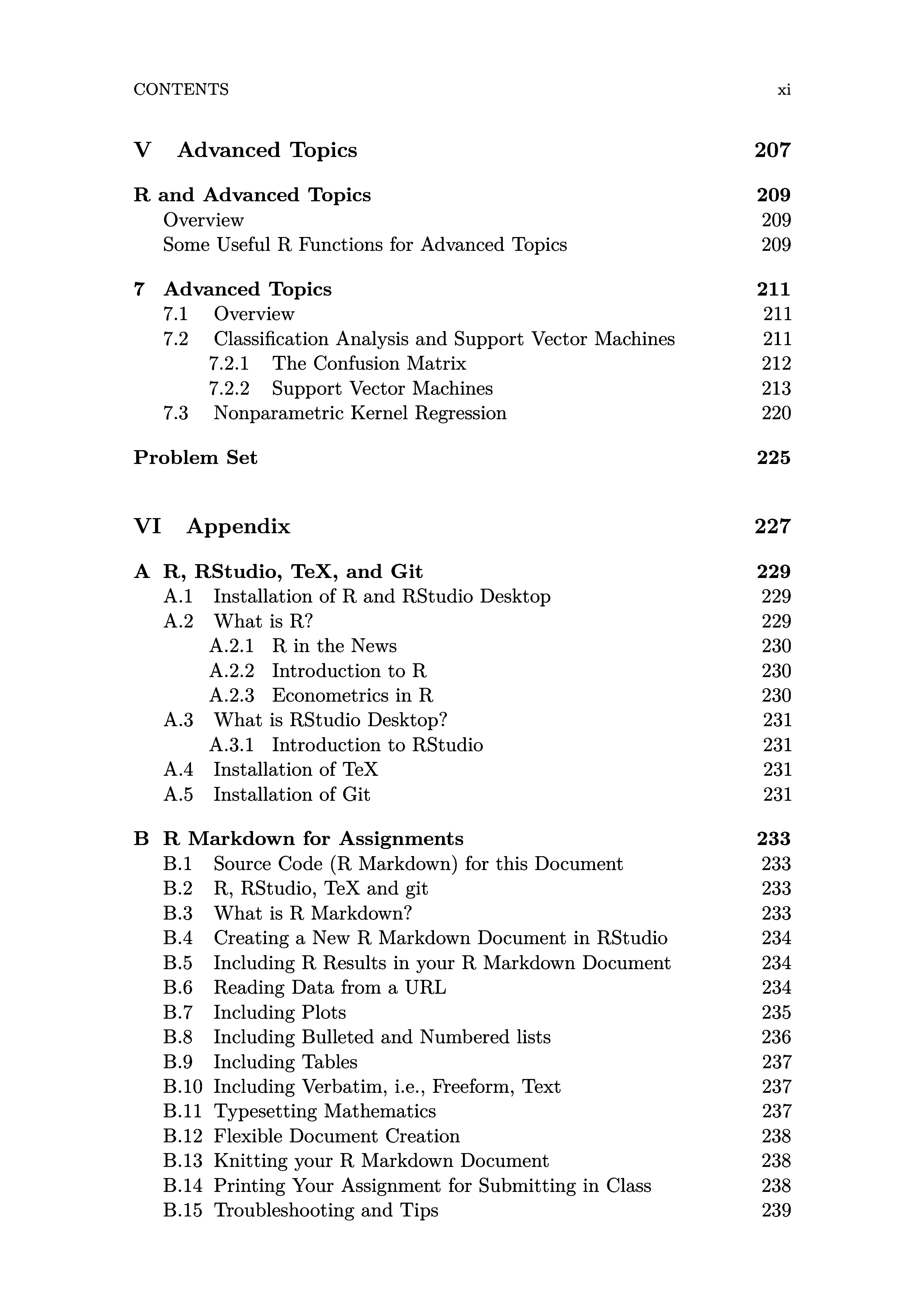 This book is intended for students studying Econometrics who are interested in leveraging recent developments in reproducible research. It relies on freely available open source tools such as R, RStudio, TeX, BibTeX, and git. Detailed appendices guide the reader through the process of installation and adoption of these tools, while the topics covered in the five parts are topics that every student ought to be familiar with.