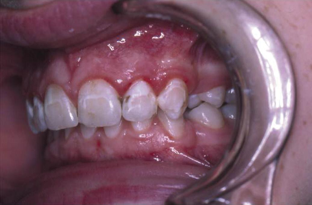 5m Reverse overjet greater than 3.5 mm with reported masticatory and speech difficulties.