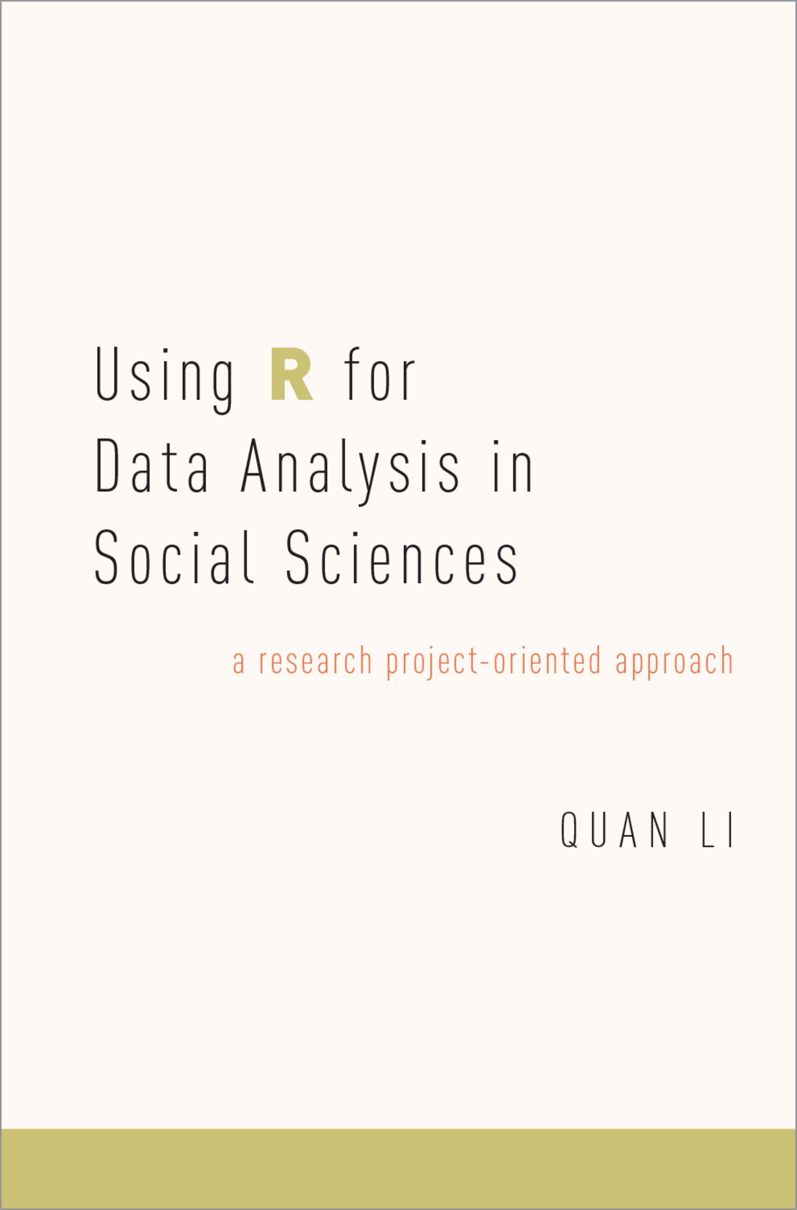 Title:UsingRfordataanalysisinsocialsciences:aresearch project-orientedapproach/QuanLi. Description:NewYork,NY:OxfordUniversityPress,[2018] Identifiers:LCCN2017010031|ISBN9780190656225(pbk.)| ISBN9780190656218(hardcover)|ISBN9780190656232(updf)| ISBN9780190656249(epub)Subjects:LCSH:Socialsciences–Research–Data processing.|Socialsciences–Statisticalmethods.|R(Computerprogramlanguage) Classification:LCCH61.3.L522018|DDC330.285/5133–dc23 LCrecordavailableathttps://lccn.loc.gov/2017010031