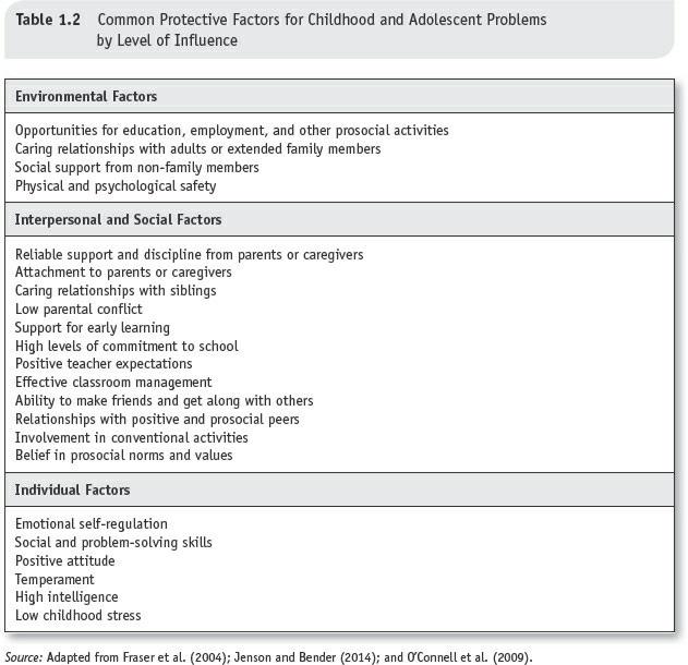 Table 1.2 shows common protective factors discussed by authors in subsequent chapters.
