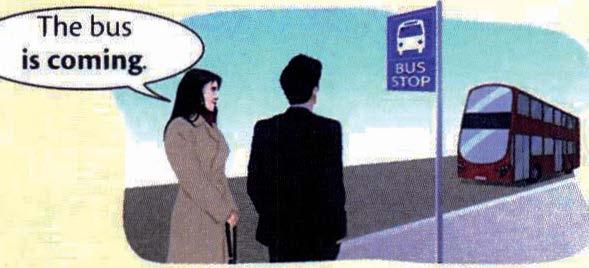 What are you writing? ,., An essay for college. Look! The bus is coming.