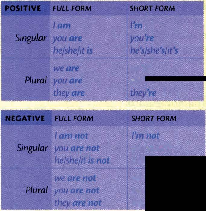 D In speech, we usually use the short forms: She's my sister. He's my brother. I'm from Italy. They're German.