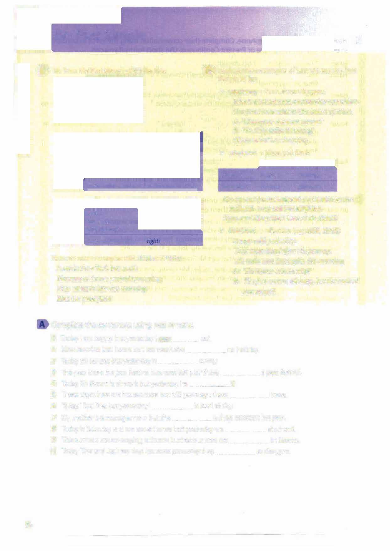 10 A: Whatareyoudoing? (rain)herealot,butit (not/rain)now.