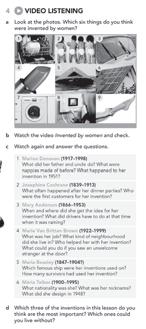discussing habits and preferences understanding opinions understanding opinions using the right word in conversation understanding an anecdote scanning for specific information reacting to a story using information to interpret a story understanding a short story