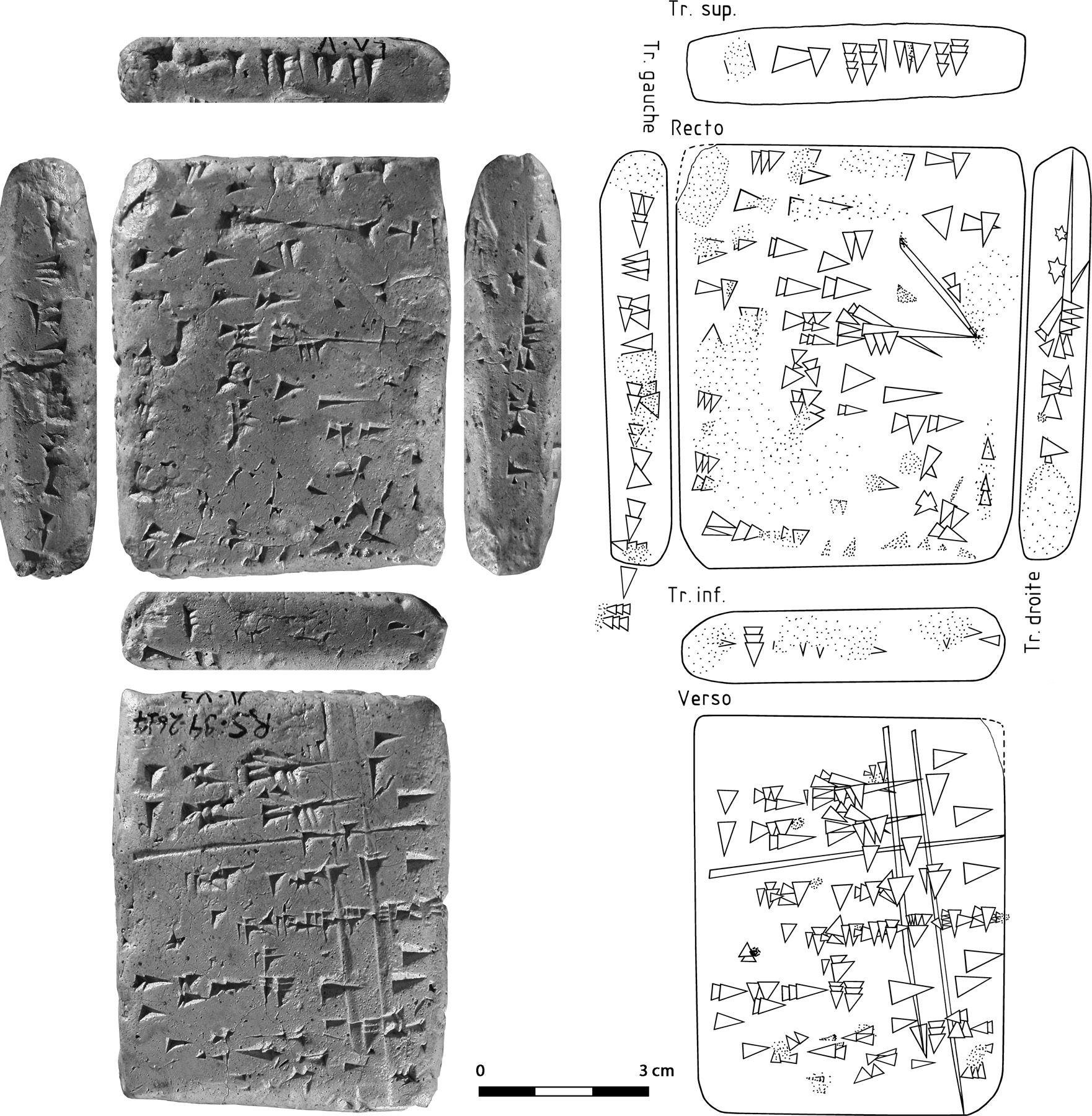Bilingual Akkadian-Ugarit scribal exercise from Ugarit. Photograph courtesy of Projet PhoTEO, Mission de Ras Shamra. Copy courtesy of D. Pardee.