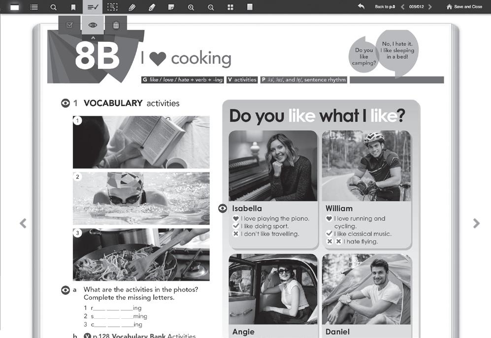 Every lesson focuses on high-frequency vocabulary and common lexical areas, but keeps the load realistic. All new vocabulary is given with the phonemic script alongside, to help students with the pronunciation of new words. Many lessons are linked to the Vocabulary Banks which help present and practise the vocabulary in class, give an audio model of each word, and provide a clear reference so students can revise and test themselves in their own time. Students can review the meaning and the pronunciation of new vocabulary on Online Practice, and find further practice in the Workbook