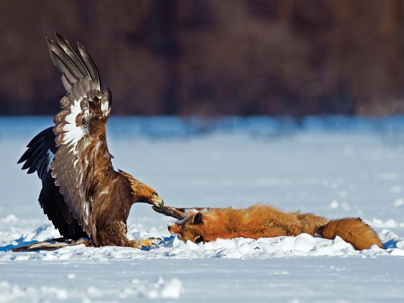 4. Golden Eagle feeding on the carcass of a Red Fox, Central Sweden.