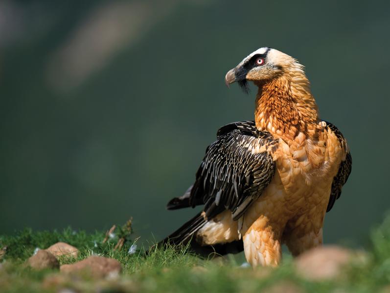 6. Lammergeier showing orange plumage caused by bathing in iron-rich pools, Pyrenees.