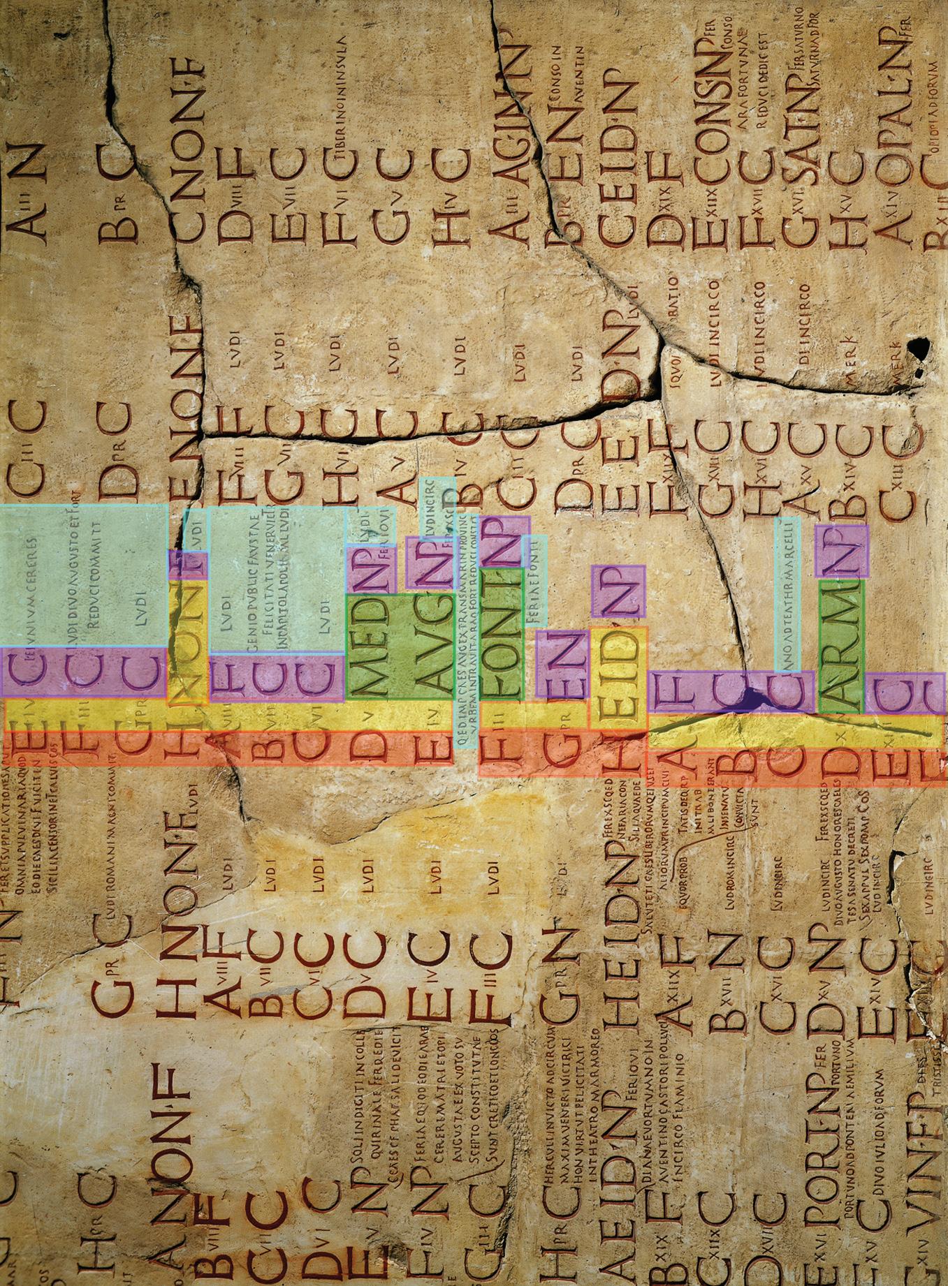 Plate 1 Fasti Amiternini. Color coding indicates categories of information