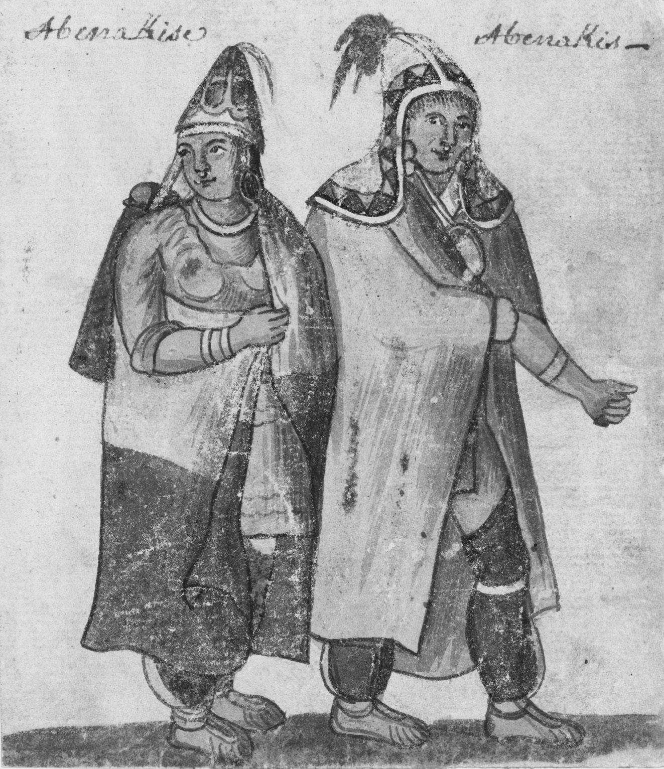 Figure 0.1 Abenaki woman and man, circa 1750, with a style of headwear common throughout Wabanakia. By permission of the City of Montreal, Records Management and Archives, Montreal, Quebec.