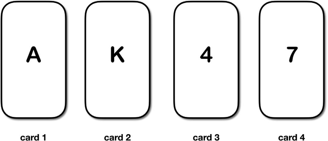 Let’s try one more test. Imagine that you are looking at four cards. Each one has a number on one side and a letter on the other (see Figure 1.2).