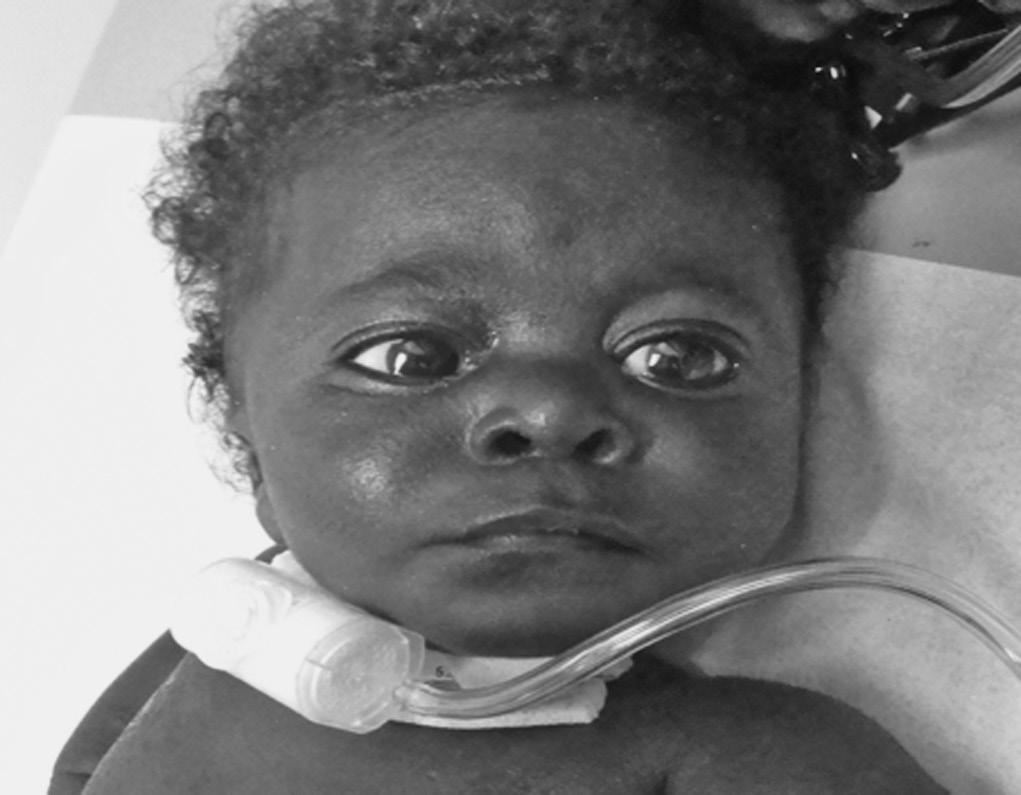 FIGURE 2.1 Infant with Majewski osteodysplastic dysplasia II as a newborn. Note prominent nose, prominent eyes, and small jaw.