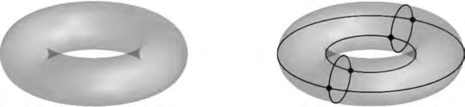 Ouraimistouseacomputertocalculatehomotopyinvariantsofarangeoftopological spaces.Thespacestypicallycontainuncountablymanypoints,andtostorethemona computerwerequireafiniteorcountablyinfiniterepresentationthatretainsallhomotopy theoreticinformation.SucharepresentationwasdevelopedbyJ.H.C.Whiteheadinhis 1949papersoncombinatorialhomotopy[289,290].Theideaistorepresentaspace asacollectionofopenballs,or cells,ofvariousdimensions.Thecellsaregluedtogether alongtheirboundaries.Whiteheadformalizedtheideaintothenotionofa CW-space (also calleda membranecomplex inhisearlierpapers),anotionwhichisfundamentaltomodern algebraictopologyandonewhichisacentralobjectofstudyinthisbook.Tomotivatethe precisedefinitionofaCW-spaceweillustrateitwiththe torus,thedirectproduct S1 × S1 oftwocircles,showninFigure1.1(left).Figure1.1(right)showsthetorusendowed withaCW-structureinvolvingfour0-dimensionalcells,eight1-dimensionalcellsand four2-dimensionalcells.