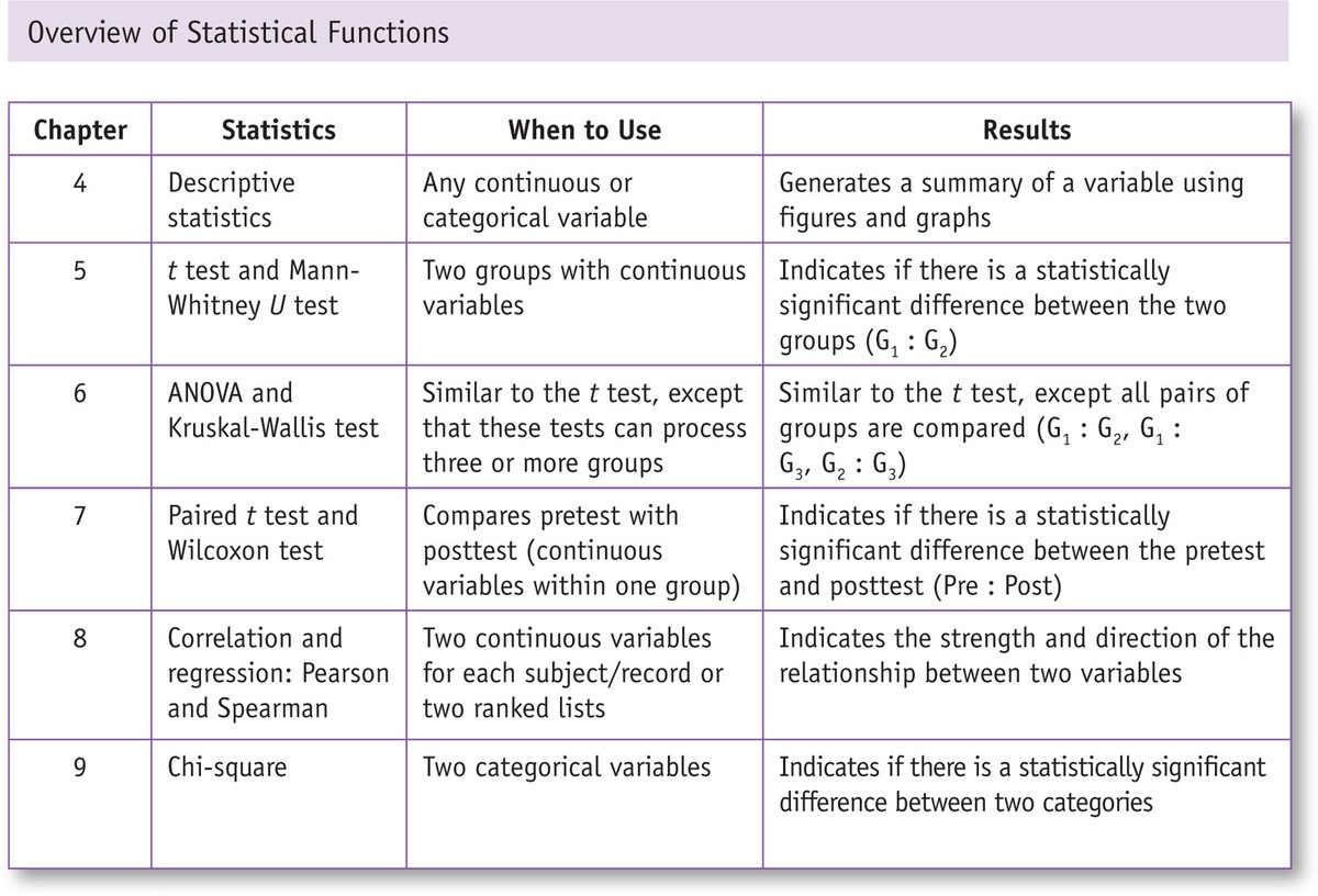 Thisbookisnotaboutabstractstatisticaltheoryorthederivationormemorizationofstatisticalformulas; rather,itisaboutappliedstatistics.Thisbookisdesignedtoprovideyouwithpracticalanswerstothe followingquestions:(a)WhatstatisticaltestshouldIuseforthiskindofdata?(b)HowdoIsetupthedata?(c) WhatparametersshouldIspecifywhenorderingthetest?and(d)HowdoIinterprettheresults?